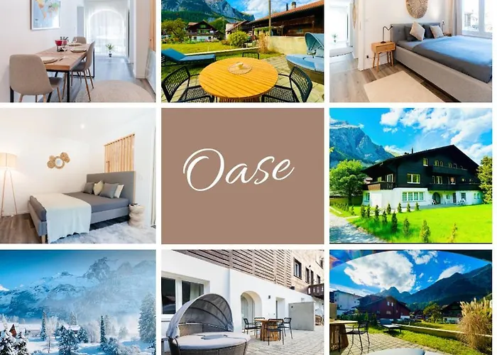 O Cute & Cozy Oasis, Private Afternoon Sun Terrace Apartamento Kandersteg está localizado a 5 minutos a pé do Teleférico de Gondelbahn Kandersteg-Oeschinen e tem vista para a montanha. Este apartamento apresenta Wi-Fi e estacionamento privado no local.